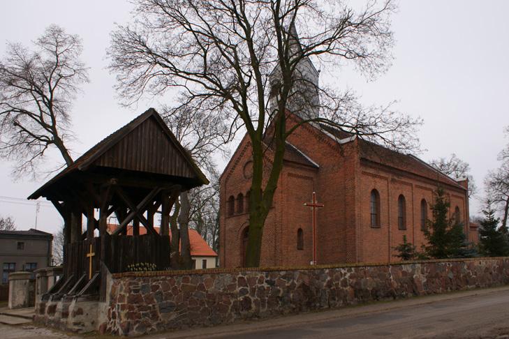 Obecny kościół został wybudowany na miejscu drewnianej świątyni w 1848 roku. Z poprzedniego kościoła pochodzą m.in. ołtarze. Na uwagę zasługuje również nietypowy chór muzyczny wraz z organami z ok. 1881 roku.