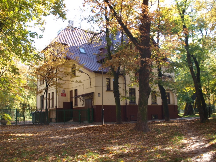 Została usytuowana w pięknym kompleksie ogrodowo-parkowym i była jedną z trzech willi Leonhardta na tym terenie. Mieszkał w niej jeden ze wspólników Leonhardta - prawdopodobnie Wilhelm Woelker. Przed wybuchem II wojny światowej całą posiadłość wraz z willami kupił Markus Kohn. W okresie okupacji mieszkał w willi nadburmistrz Litzmannstadt Werner Ventzki.