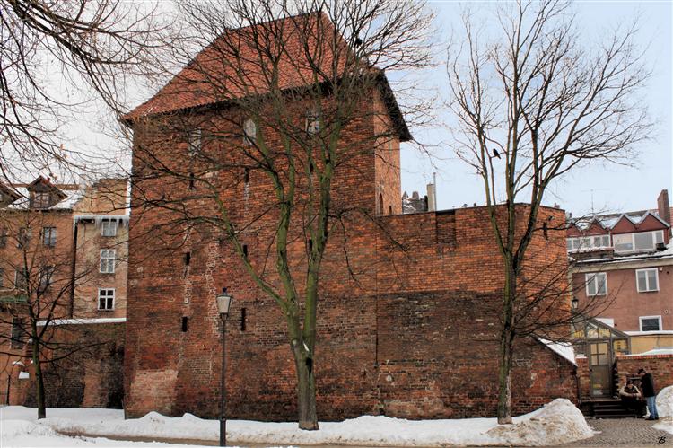 Wybudowana została w XV wieku w celu wzmocnienia średniowiecznych fortyfikacji miasta. Wraz z basztami Jacek i nieistniejącą już Dominikańską (zwaną też "Patrz od kuchni") umacniała miasto od strony północno-zachodniej. Jak większość gdańskich zabytków podczas II wojny światowej została prawie całkowicie zniszczona. Dopiero pod koniec lat 80. przeprowadzono prace rekonstrukcyjne. Przez kilka lat to ciekawe miejsce było siedzibą Gdańskiego Muzeum Sportu i Turystyki. Obecnie znajduje się tu Dział Konserwacji Zabytków Muzeum Historycznego Miasta Gdańska.