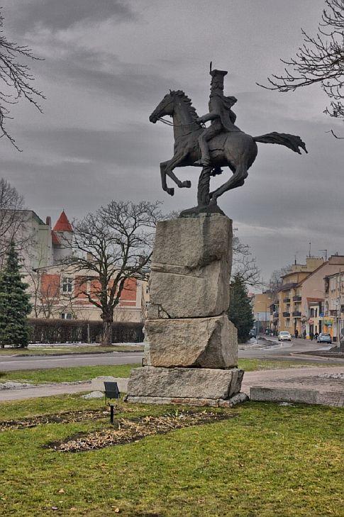 Pomnik odlany z brązu odsłonięto z okazji 200-lecia powstania Mazurka Dąbrowskiego. Przedstawiający postać generała dosiadającego konia i wskazującego szablą kierunek ataku, został ustawiony na kamiennym cokole. Autorem pomnika jest Robert Sobociński - poznański rzeźbiarz.