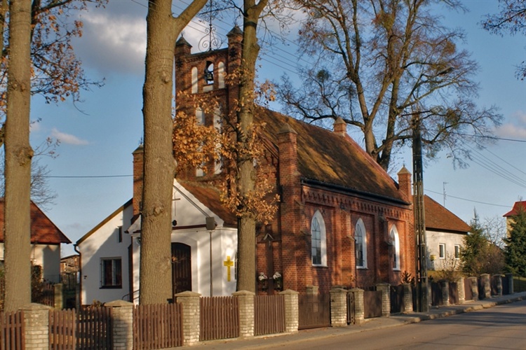Kościół został zbudowany w 1906 roku. Początkowo była to kaplica, która w 1942 roku przeobraziła się w kościół, kiedy to przyznano jej stałego kapłana. Od 1965 kościołem opiekowali się księża franciszkanie. W dniu 7 stycznia 2001 arcybiskup metropolita warmiński Edmund Piszcz przekazał pieczę nad tą świątynią księżom pasjonistom (Zgromadzenie Męki Jezusa Chrystusa). W latach 1968-72 kościół rozbudowywano - dobudowano kruchtę, prezbiterium i pomieszczenia mieszkalne.