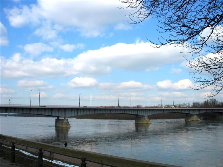 Czesi chwalą się olbrzymią ilością mostów na Wełtawie w Pradze, nie biorą jednak pod uwagę jednego istotnego faktu. Oni każdy most budują jeden raz. My czasami nawet trzy razy. W tym miejscu przeprawa przez Wisłę istniała już w 1864 roku, bowiem wtedy właśnie zbudowano jakże charakterystyczny dzięki swojej potężnej kratownicy most Kierbedzia. Tak naprawdę nazywał się Aleksandryjski, ale to imię niezbyt przyjemnie kojarzyło się Polakom pod zaborami, więc wszyscy powszechnie używali nazwiska projektanta i budowniczego Stanisława Kierbedzia. Rosjanie wysadzili w powietrze tę konstrukcję w 1915 roku. Dość szybko odbudowana służyła przez całe dwudziestolecie międzywojenne aż do roku 1944. Tym razem Niemcy zniszczyli most. Kolejnej odbudowie przyglądała się cała Polska, bowiem przeprawa wchodziła w skład słynnej trasy W-Z. Doskonale pokazuje to serial telewizyjny "Dom” Nowy most otrzymał też nową nazwę, bo rzeczywiście poza filarami konstrukcja nie miał nic wspólnego z obiektem przedwojennym. A nazwa była podziękowaniem za wkład hutników z ówczesnego województwa śląsko-dąbrowskiego.