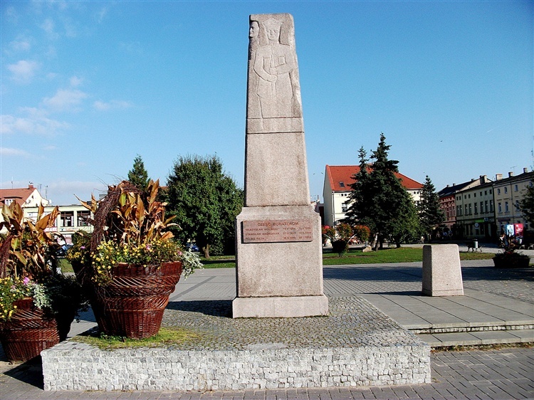 Stojący na placu Niepodległości (dawnym Rynku), przed Sądem Rejonowym (byłym ratuszem), pomnik Powstańców Wielkopolskich posiada ciekawą historię. Jego kształt oraz wielkość świadczą o tym, że bazą do jego powstania był Kriegerdenkmal znajdujący się w czasach zaboru pruskiego przy placu Chopina. Stary obelisk został przetworzony przez rzeźbiarza Jana Marię Jakóba. Podaje się dwie daty odsłonięcia pomnika - rok 1963 i 1966.