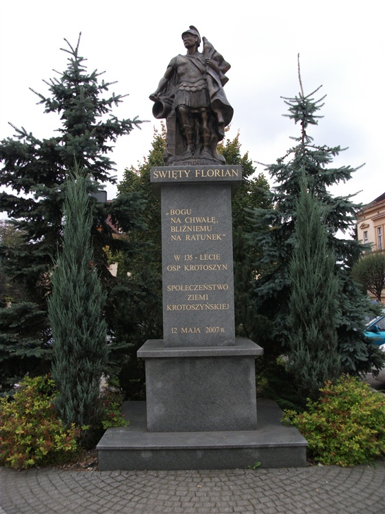 Początki Ochotniczej Straży Pożarnej w Krotoszynie sięgają 2 połowy XIX w. w 2007 r. społeczeństwo miasta, w 135. rocznicę jej utworzenia, ufundowało pomnik patrona strażaków św. Floriana. Monument stanął w Małym Rynku.