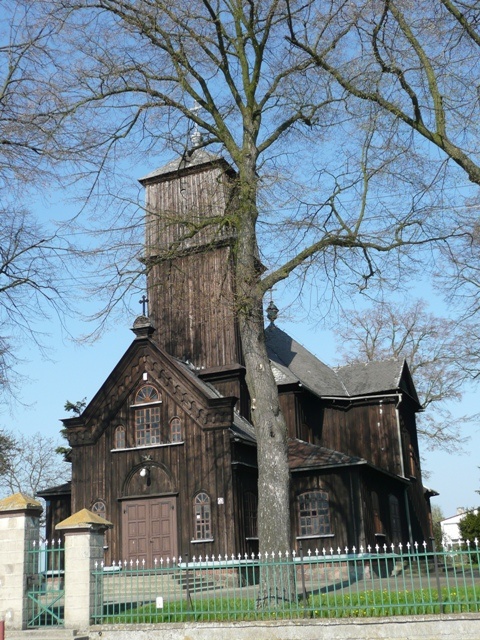 Drewniany kościół pw. św. Katarzyny i Niepokalanego Serca Maryi w Łękach Wielkich pochodzi z 1776 roku. Został wzniesiony na planie krzyża. Na ścianach znajduje się polichromia z okresu budowy kościoła, którą restaurowano w 1870 roku.