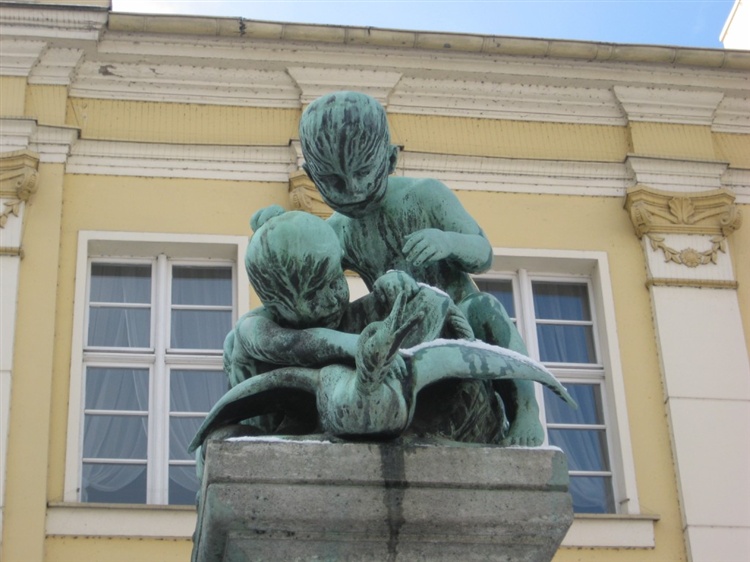 Fontanna-rzeźba nazywana Studzienką, została odsłonięta w 1909 r. w sąsiedztwie najstarszej w mieście aptece (Pod Złotym Orłem). Po wojnie fontannę przeniesiono na Stary Rynek. Rzeźba umieszczona na wysokim cokole przedstawia dwoje dzieci bawiących się z gęsią. Autorem projektu fontanny był rzeźbiarz Karol Kowalczewski.