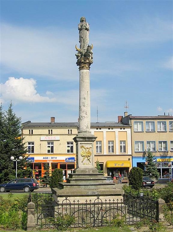 Kolumna Maryjna z 1697 r. postawiona z fundacji mieszczan oleskich nękanych przez wojny, żywioły, kataklizmy i choroby.