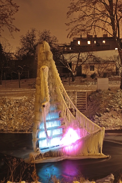Jedna z niewielu tego typu konstrukcji w Europie: fontanna na rzece Wełnie, w centrum miasta, którą podczas zimowej aury rzeźbi w niezwykle kształty sama natura. Każdego dnia rzeźba ta przekształca się i zmienia, pokazując jak wspaniałe formy może przybrać odpowiednio ukierunkowana przyroda.