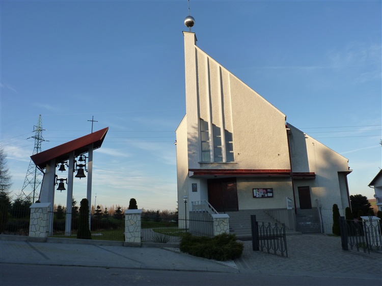 Kościół parafialny pw. Matki Bożej Niepokalanej zlokalizowany jest w górnej części wsi, przy drodze w kierunku przysiółka Przylasek. Inicjatorem budowy świątyni był ks. prałat Stanisław Bąk – żołnierz AK i WiN, więzień komunizmu. Kamień węgielny pod budowę poświęcił Ojciec Święty Jan Paweł II w Krakowie w dniu 23 czerwca 1983 r. Nowy przybytek boży wzniesiony został w latach 1983-1985 według projektu Andrzeja Smoczyńskiego i Władysława Jagiełły. Konsekracji nowej świątyni dokonał w dniu 18 czerwca 2000 r. ks. bp Kazimierz Górny.