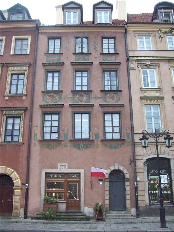 Kamienica została zniszczona w 1944 roku, a odbudowana w latach 1952-53, według projektu Mieczysława Kuzmy i Józefa Chodaczka. Odtworzono wówczas fasadę trzyosiową a w przyziemiu portal z pierwszej połowy XVII w., boniowany, zamknięty półkoliście. Elewację natomiast zdobi polichromia o tematyce zwierzęcej z 1953 roku wykonana przez Juliusza i Krystynę Studnickich.