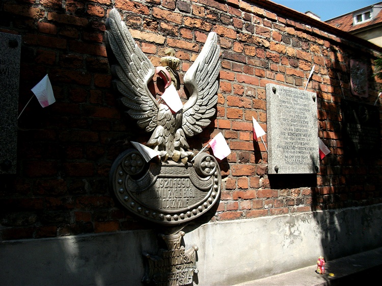 Na zapleczu dawnego budynku klasztornego przy kaliskiej katedrze znajduje się mur odgradzający teren kościoła i ogrodu. Mur ten zaadaptowano na ścianę pamięci. Na nim, pomiędzy posadzonymi żywotnikami, osadzono kilkanaście tablic upamiętniających różne osoby i wydarzenia z historii Polski. Swoje miejsce mają tu m.in. Józef Piłsudski, Roman Dmowski oraz ofiary wojny.