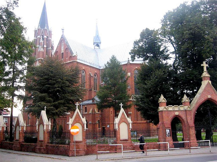 Na początku 1856r.,obok istniejącego drewnianego kościółka, rozpoczęto budowę nowego, w stylu neogotyckim, na kształcie krzyża. Jesienią 1860r.odbyły się tu pierwsze nabożeństwa. Kościół przetrwał w 1945r. bombardowanie, które dokonało znacznych zniszczeń w budowli. Po bombardowaniu uległ spaleniu, na szczęście wiele cennych detali zachowało się do dziś, m.in. witraże wykonane w monachijskiej firmie Mayer.