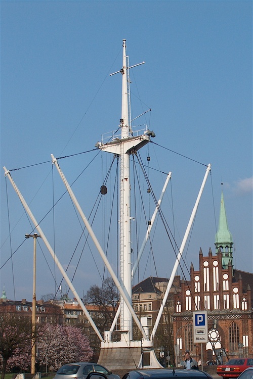 Maszt z parowca SS "Kapitan K. Maciejewicz" stoi przy Placu Solidarności - ma 30 metrów wysokości i waży 30 ton. Maszt pierwotnie był częścią parowca "Wisconsin", który zbudowano w niemieckiej stoczni Bremer w 1929 roku. W 1951 roku ów parowiec kupiły PLO i zmieniły mu nazwę na "Fryderyk Chopin".