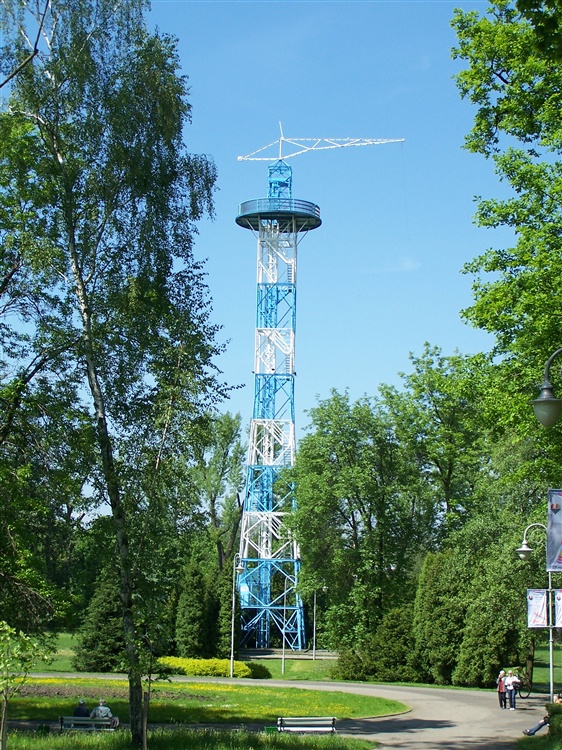 W opisie występują nieścisłości: wieża powstała w 1925 roku. Służyła do celów szkoleniowo-treningowych. Została rozebrana wkrótce po wkroczeniu hitlerowców do Katowic i odbudowana w latach 1946-1947. Jej wysokość wynosi 40 metrów. Obecnie ma kolor biało-niebieski.(robertii)