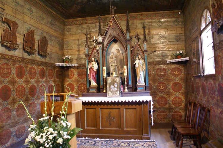 Drewniany kościół konstrukcji zrębowej pokryty gontem wzniesiono około 1670 r. Od zachodniej strony przylega do kościoła również drewniana wieża słupowa. Ściany wewnętrzne świątyni zdobią niezwykłe polichromie z około XVII w. Wyposażenie kościoła stanowią między innymi ołtarz z obrazem Jana Chrzciciela oraz drewniana chrzcielnica, na której widnieją daty 1400 i 1882.