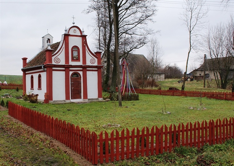 Jeśli chodzi temat małej architektury sakralnej, to wspomniana kaplica nie jest jedynym takim obiektem. Udając się z tej miejscowości w kierunku wsi Samławki umiejscowiona jest warmińska kapliczka, pochodząca z 1868 roku. Wystawiono ją w stylu barokowym, charakteryzuje ją głęboka i otwarta wnęka, umieszczono w niej ciekawy drewniany krucyfiks.