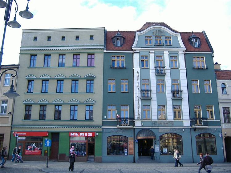 Dzisiejszy Hotel Polonia znajdujący się w Rynku pod numerem 34 powstał w XIX wieku jako dom mieszkalny ówczesnego burmistrza Jana Gottlieba Wessela. Jeszcze w czasie zaboru pruskiego kamienica po przebudowie w stylu secesyjnym stała się Hotelem Pod Bialym Orłem. Nazwa ta, jak na owe czasy, była swoistą ciekawostką. Dzisiaj w kamienicy działa nadal hotel, ale nosi nazwę Polonia.