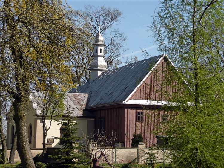 Drewniany kościół pw. Marii Magdaleny z 1784 r. ufundował ówczesny dziedzic wsi ks. Andrzej Mniszkowski. Budynek świątyni jest drewniany, jednonawowy o konstrukcji zrębowej, oszalowany i pokryty dwuspadowym dachem. Od strony północnej do budynku przylega murowana kaplica dobudowana w 1869 r. Ścianę szczytową kaplicy wieńczy attyka o linii falistej. W wyposażeniu kościoła można zobaczyć elementy przeniesione ze słynnej romańskiej kolegiaty w