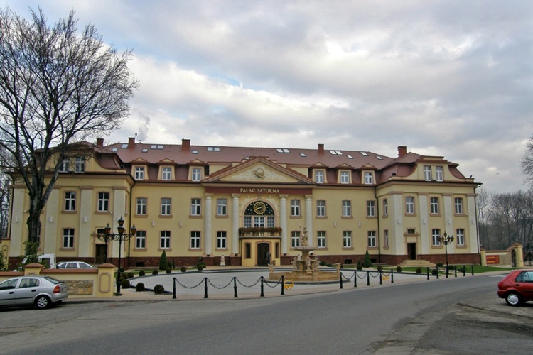 Pałac Saturna znajduje się w trzykondygnacyjnym, neoklasycystycznym budynku o charakterze pałacowym, będącym niegdyś siedzibą biura "Towarzystwa Saturn", a następnie dyrekcji Kopalni "Saturn". Został wybudowany w 1910 roku, a następnie w latach 1922-23 rozbudowany do obecnej wielkości. Na ścianie frontowej budynku znajduje się rozbudowany portyk obrazujący planetę Saturn. Nad balkonem mieści się ogromny zegar otoczony postaciami górników.