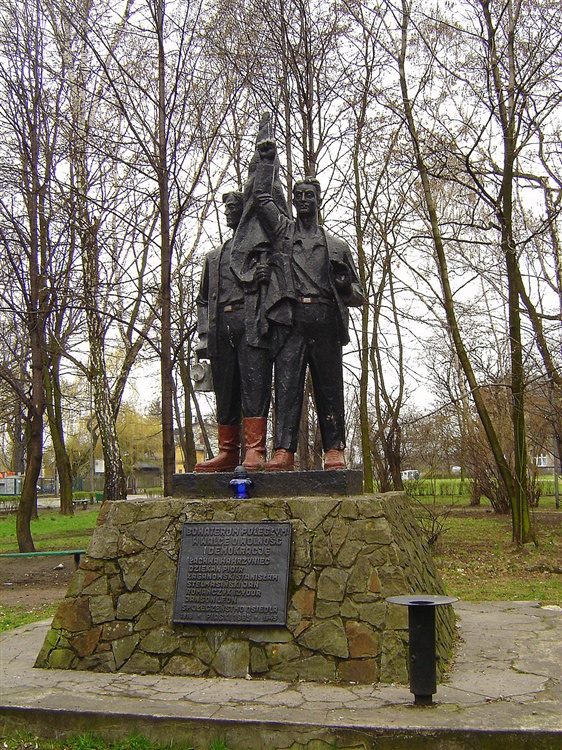 Pomnik "Bohaterom poległym w walce o wolność i demokrację" znajduje się w południowej części od osiedla Piaski, za kościołem MB Bolesnej, na skwerze między ulicami Kościuszki, Sikorskiego i 3 Kwietnia. Upamiętnia on tragiczne wydarzenia z 1924 roku, kiedy to od kul policjantów tłumiących strajk zginęło czterech górników Kopalni "Czeladź".