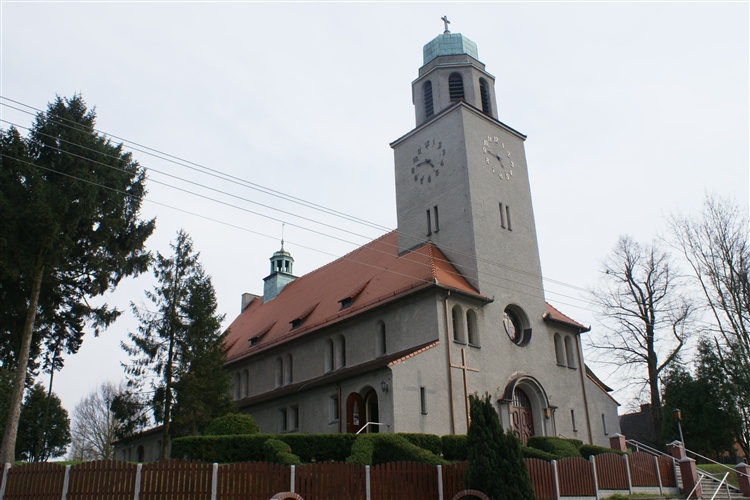 Pierwsze wzmianki o istnieniu kościoła sięgają 1274 r. 27.04.1931 r. po odprawieniu ostatniego nabożeństwa zabytek ten został zburzony. W tym samym roku, po niespełna półrocznej budowie 8 listopada nastąpiła konsekracja nowego kościoła. Trójnawowa świątynia została wybudowana z cegły i otynkowana. Część wyposażenia świątyni stanowi wyposażenia ze starego kościoła. Obok kościoła znajduje się zabytkowa, drewniana dzwonnica.