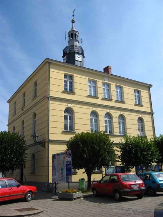 Ratusz w Jutrosinie to budowla murowana na planie kwadratu trójkondygnacyjna, podpiwniczona i przykryta dachem namiotowym. Data jego budowy jest sporna, szacuje się, że powstał w ostatnich latach pierwszej połowy XIX wieku. Z poprzedniego starego ratusza zachowała się jedynie sylwetka koguta. Do części głównej części ratusza przylegają dwie przybudówki i budynek na zapleczu. Na szczycie ratusza jest ośmioboczna wieża z zegarem, nakryta hełmem z latarnią.