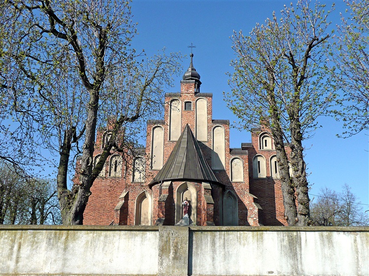 Murowany, późnogotycki kościół parafialny pw. św. Augustyna z przełomu XV i XVI w. oraz drewniana dzwonnica.