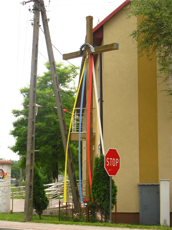 Krzyż można zauważyć wjeżdżając do Brzezin z trasy Kielce - Tarnów. Znajduje się on przy Urzędzie Gminy Morawica. Wysoki, drewniany krzyż ogrodzony jest metalowym płotkiem.