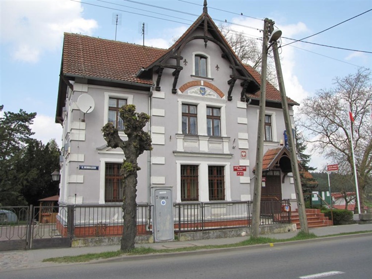 Budynek poczty znajduje się obok Urzędu Gminy, przy ul. Grunwaldzkiej 9. Zbudowany został na początku XX w. jako budynek mieszkalny. Warto zwrócić uwagę na elementy architektoniczne zdobiące zabytkowy budynek, m.in. obramowania otworów okiennych oraz na elementy drewniane w ścianie frontowej.