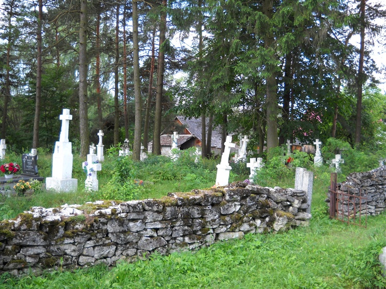Na cmentarzu przycerkiewnym zachowały się nagrobki z pracowni kamieniarskich w Starym Bruśnie z XIX w. Z braku miejsca wewnątrz cerkiewnych murów resztę pochówków składano na cmentarzu, na wschód od świątyni, przy drodze do Werhraty.