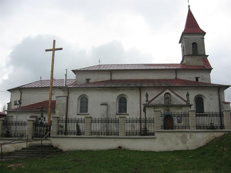 Stacje Drogi Krzyżowej umieszczone w murowanym ogrodzeniu kościoła wykonane są z gipsowych, polichromowanych odlewów. Wszystkie umieszczone są w kapliczkach tej samej architektonicznej formie. Z inskrypcji na podmurówce dowiadujemy się, że wszystkie powstały w roku 1903 a fundowane były przez bogatych mieszkańców lub ze składek okolicznych parafian. Przy schodach wiodących na dziedziniec kościoła umieszczone zostały kamienne figurki ewangelistów, w których można się dopatrzyć śladów dawnej polichromii.