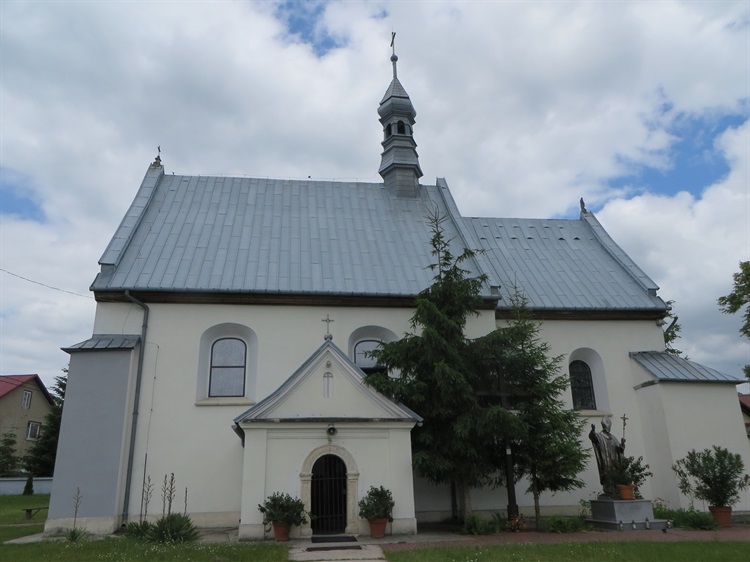 Budowla jest murowana, jednonawowa. Składa się z nawy, węższego prezbiterium i dobudowanej do nawy, w latach późniejszych kwadratowej kaplicy mariackiej. We wnętrzu kościoła znajduje się kilka późnorenesansowych portali i przeważa wyposażenie późnobarokowe.