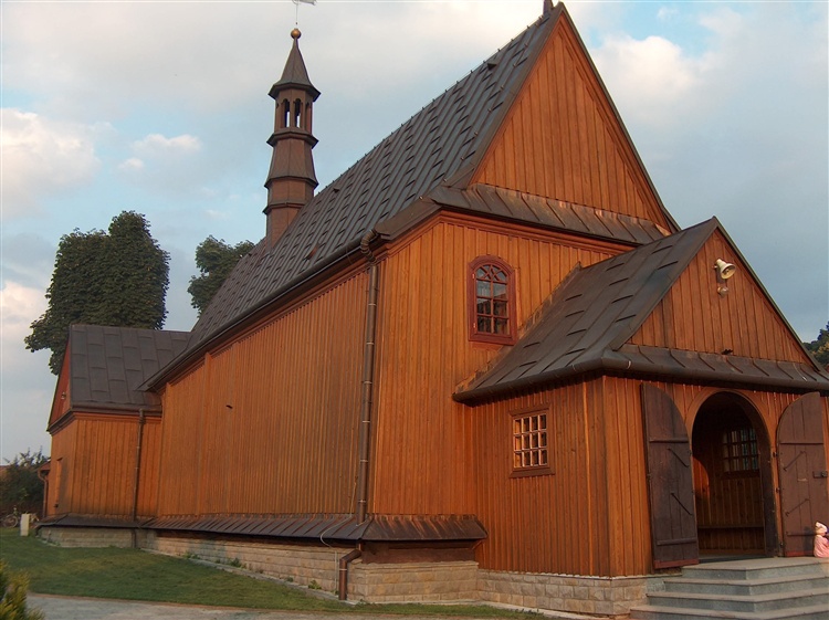 Kościół w Polnej zbudowano w XVI w., natomiast w połowie XIX w. został przebudowany. Przedłużono wtedy nawę i dostawiono dwie kruchty. Świątynia ma konstrukcję zrębową i nie posiada wieży. We wnętrzu zabytku warto zobaczyć ołtarz główny i dwa boczne ołtarze pochodzące z XVIII w. Ambona również pochodzi z XVIII w., a chrzcielnica i kropielnica z XVI w. W latach 1966-67 odkryto w prezbiterium renesansową polichromię z XVI w., przedstawiającą sceny Męki Pańskiej oraz postaci świętych.