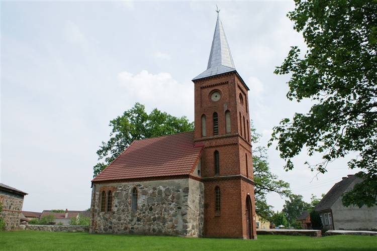 Kościół wybudowany został w XV wieku z głazów narzutowych w stylu gotyckim; przebudowano go w 1873 roku. Wieża z cegły została dobudowana do świątyni w 1889 roku.