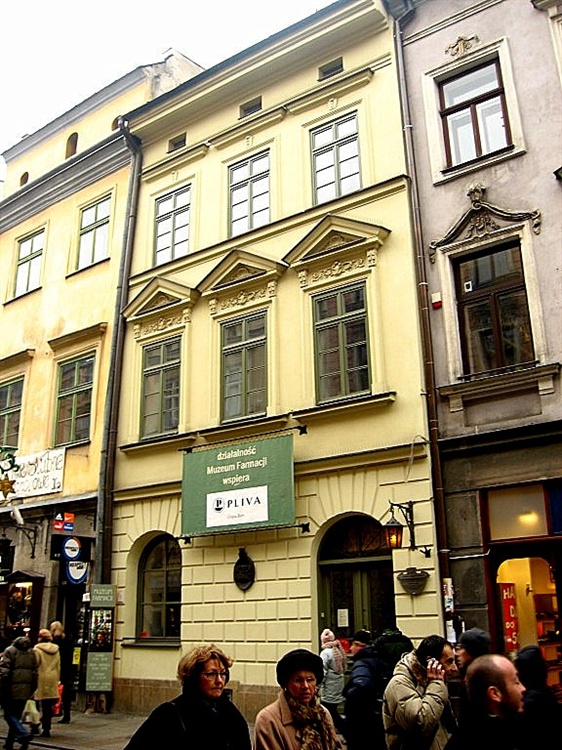 Krakowskie Muzeum Farmacji znajduje się w zabytkowej kamienicy mieszczańskiej z XIV-XV w. modernizowanej w XVIII i XIX w. We wnętrzu zachowane kamienne, renesansowe portale z przełomu XV i XVI w., polichromie, drewniane belki stropowe, gotyckie piwnice oraz fresk z XIX w. przedstawiający ogród. Od 1991 r. siedziba Muzeum Farmacji Collegium Medicum UJ w Krakowie, wcześniej mieszczącego się przy ulicy Basztowej, które założone zostało w 1946 roku przez dr Stanisława Pronia - pierwszego dyrektora muzeum.