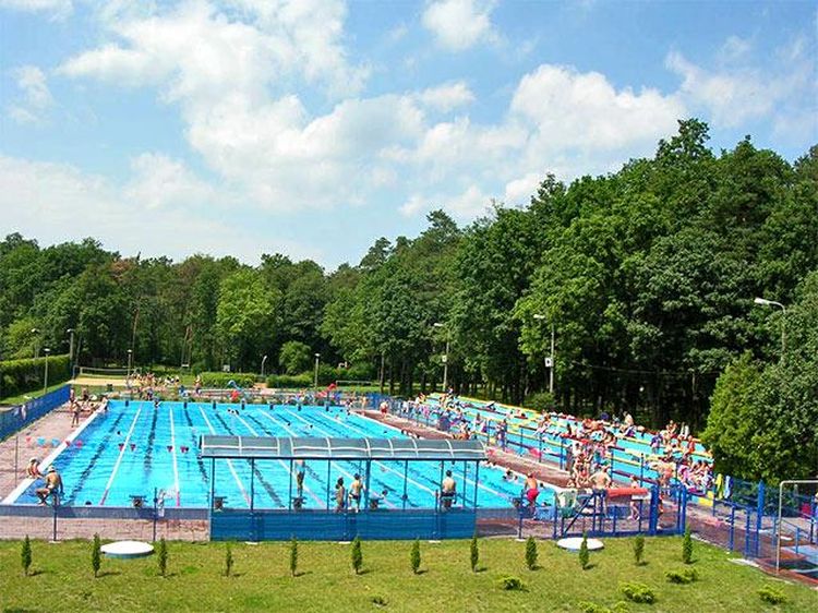 - ośmiotorowa pływalnia z podgrzewaną wodą o wymiarach 50x18 m i głębokości 1,40-2 m
