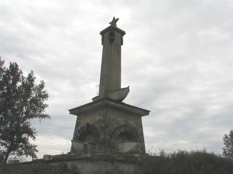 Jesienią 1945 r. rosyjska jednostka inż-bud. wzniosła na lewym brzegu Odry olbrzymi obelisk. Potem, przez lata, pod pomnik przyjeżdżały delegacje z wieńcami, odbywały się apele poległych a rosyjscy żołnierze składali tu coroczne przysięgi. Obecnie pomnik, zapomniany przez lokalne władze, coraz bardziej niszczeje, ale wciąż pozostaje niemałą atrakcją dla turystów zafascynowanych historią wojenną.