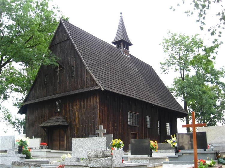 Cmentarny kościółek z XVI w., który na przestrzeni swego istnienia pozostał w prawie nie zmienionym kształcie; dopiero w wieku XVIII nadano mu barokowy wystrój wnętrza. Kościół pełni funkcje mszalne podczas pogrzebów oraz nabożeństw odpustowych w uroczystość św. Trójcy. To duży kościół drewniany.