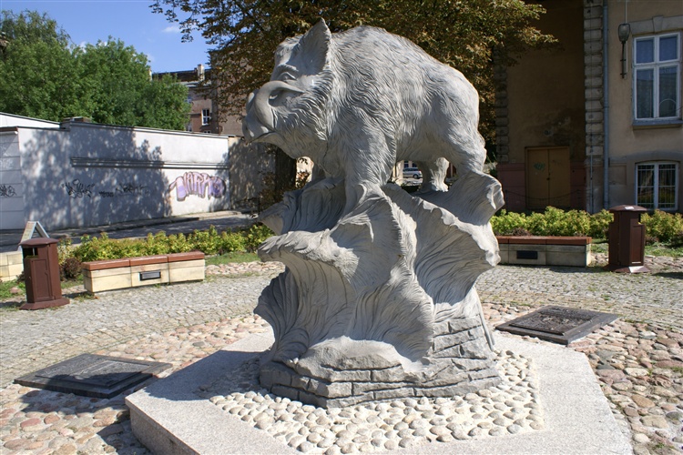 Rzeźba dzika autorstwa Bolesława Michałka nawiązuje do legendy o powstaniu miasta. Rzeźba została wykonana z piaskowca, ma 2,20 m wysokości i waży 4,5 tony. Natomiast legendę o powstaniu Kielc opowiada 6 tablic umieszczonych u podnóża pomnika.
