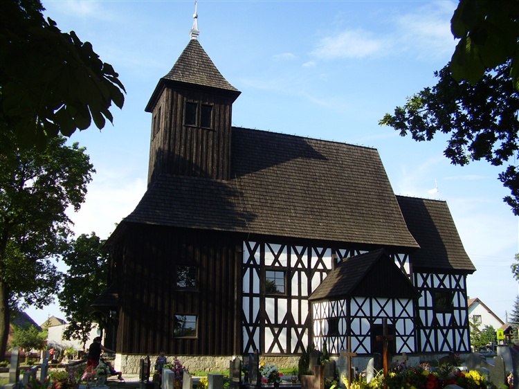 Kościół parafialny pw. św.Katarzyny Aleksandryjskiej zbudowany w 1660 r. na miejscu drewnianej świątyni z XIV w. Jest to kościół szachulcowy, kryty gontem. Wewnątrz znajduje się późnorenesansowy ołtarz główny z 1591 roku z cennym obrazem Chrystusa oraz obrazem ludowym o tematyce zdjęcia z krzyża, z 2 poł. XVII w. Ponadto na uwagę zasługuje barokowy prospekt organowy z 1704 roku, kilka wartościowych obrazów z XVII i XVIII w. oraz wczesnobarokowa chrzcielnica z poł. XVII w.