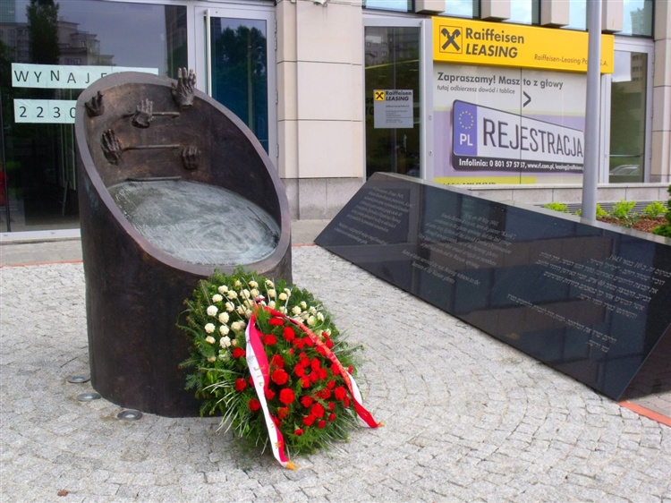 Pomnik upamiętnia ucieczkę ok. 50 bojowników żydowskich z warszawskiego getta w 1943 r. Z wyglądu pomnik przypomina wyjście z ulicznych kanałów. Jest ozdobiony odlewami ludzkich rąk. Historię ucieczki z getta można obejrzeć w amerykańskim filmie z 2001 r. pt. „Uprising”.