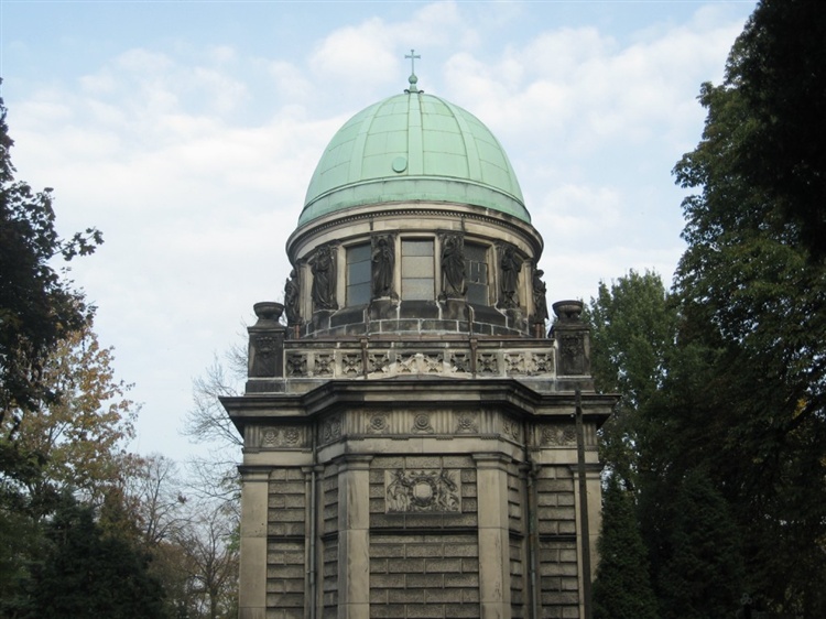 Kaplica zbudowana została na przełomie XIX i XX w. wg projektu Franza Schwechtena. Należy do najznakomitszych dzieł sztuki sepulkralnej. Obok kaplicy Karola Scheiblera jest najbardziej znanym i okazałym grobowcem w Łodzi, a stylem architektonicznym jest porównywana do kaplicy Zygmuntowskiej. Wieńczny ją charakterystyczna kopuła.