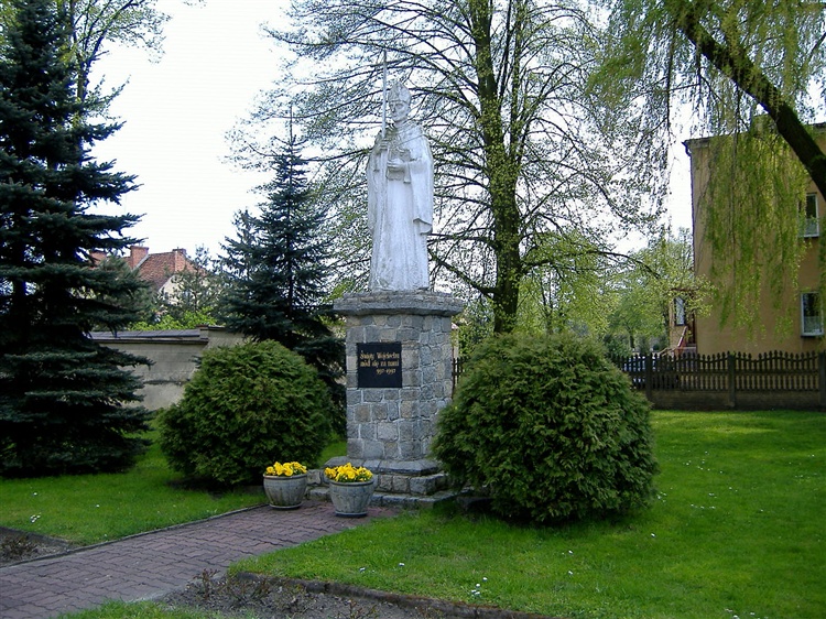 W 1997 r. przypadało 1000-lecie śmierci Świętego Wojciecha. Święty kościołów katolickiego i ewangelickiego został zamordowany w 997 r. przez pruskiego strażnika Sicco. Jego ciało spoczęło w Gnieźnie, a sam święty jest dziś jednym z patronów Polski. Dla uczczenia rocznicy śmierci św. Wojciecha w Strzałkowie stanął pomnik. Na cokole z granitowej kostki stoi postać Świętego z krzyżem i Pismem Świętym w dłoniach.