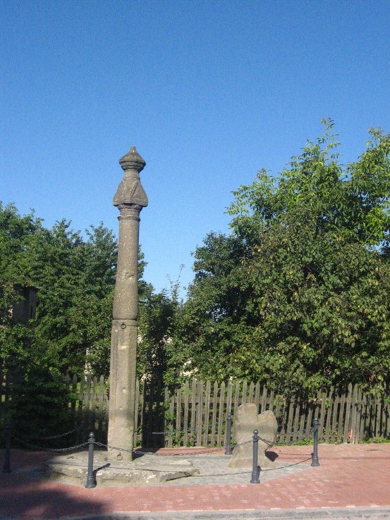W centrum wsi, przy głównej drodze stoją, tuż obok siebie, dwa bardzo ciekawe zabytkowe obiekty. W miejscu, gdzie biczowano lub pokazywano ludzi skazanych za przestępstwo, stoi renesansowy pręgierz z XVI wieku, do którego przywiązywano skazańców. Obok znajduje się krzyż pokutny z utrąconym ramieniem. Krzyże pokutne były stawiane najczęściej w wieku XIV-XVI przez morderców, którzy w ten sposób mogli odkupić swoje winy.
