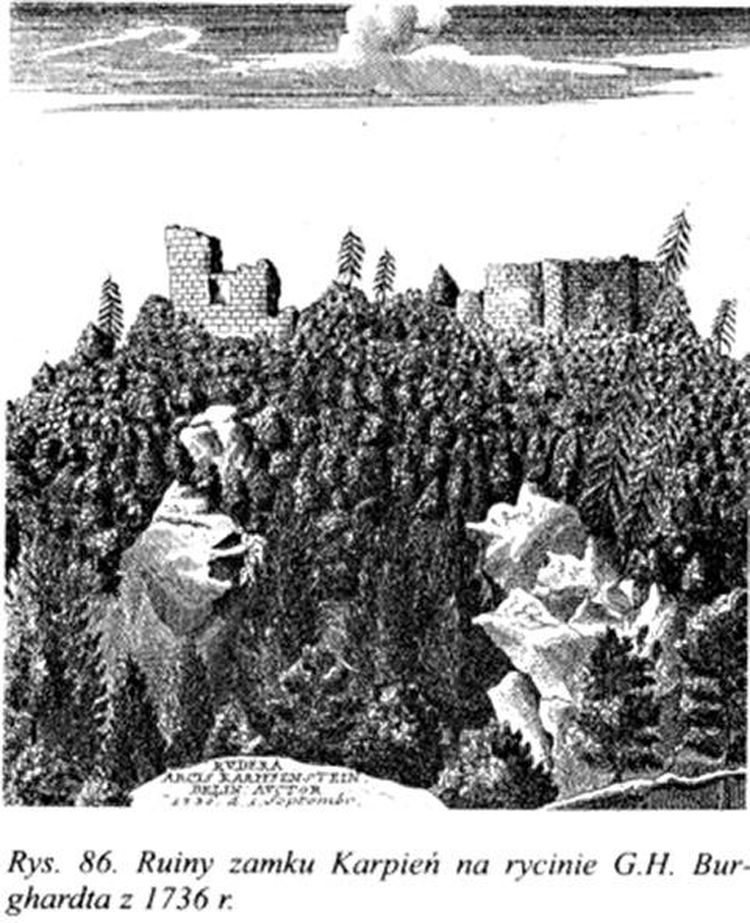 W XIV i XV w. Karpień był centrum państewka obejmującego obszar doliny górnej Białej Lądeckiej i jej dopływów - powyżej Radochowa. Zniszczony w czasie wojen husyckich, stał się siedzibą rycerzy rabusiów.
