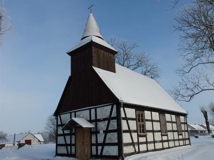 Kościół pw. MB Ostrobramskiej, dawniej ewangelicki obecnie rzymskokatolicki, został wzniesiony w XVIII w. Jest to świątynia o konstrukcji szachulcowej, salowa, bez widocznego prezbiterium, z drewnianą wieżą zwieńczoną dachem w kształcie piramidy. W latach 70. ubiegłego wieku kościół przeszedł gruntowny remont.