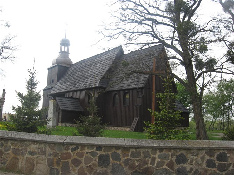 Drewniany kościół pochodzący z XVI w. W XVII i XVIII w. rozbudowano kościół dobudowując do niego wieżę i kaplicę. Wyposażenie w większości jest barokowe, zachowały się ambona, dwie chrzcielnice, drewniana oraz kamienna gotycka, renesansowe epitafium, a także częściowo zachowane polichromie z XVI w.