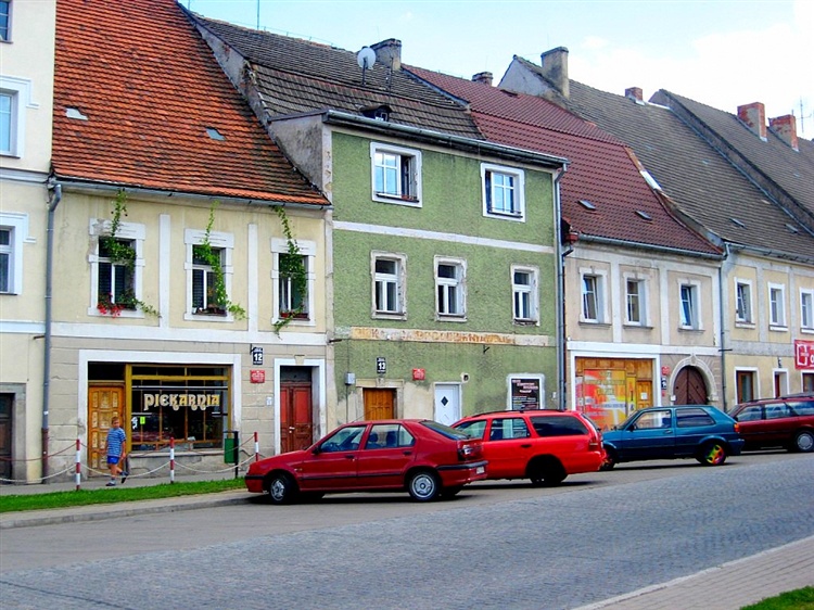 Zabytkowe kamieniczki na rynku w Międzylesiu, pochodzące z XVIII i XIX w., w najładniejszej znajduje się obecnie księgarnia.
