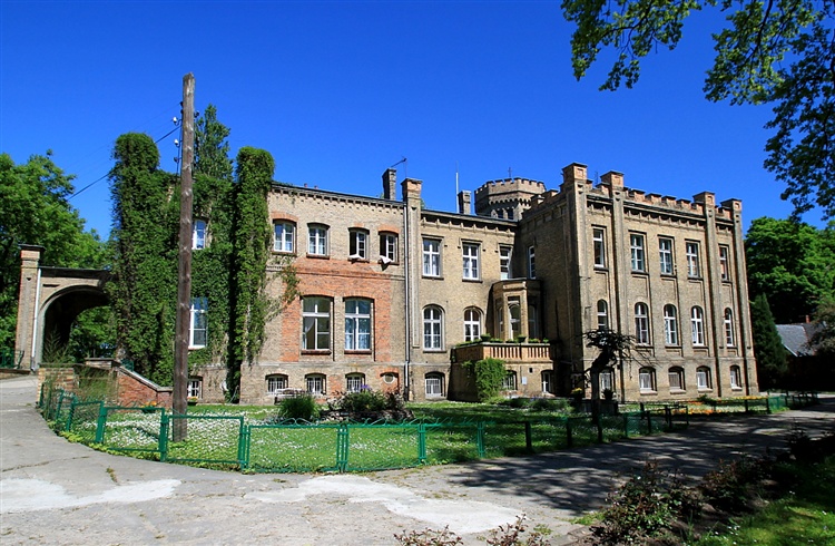 Neogotycki, piętrowy pałac z 2 połowy XIX wieku, otoczony zabytkowym parkiem w stylu krajobrazowym o powierzchni 3,5 ha.