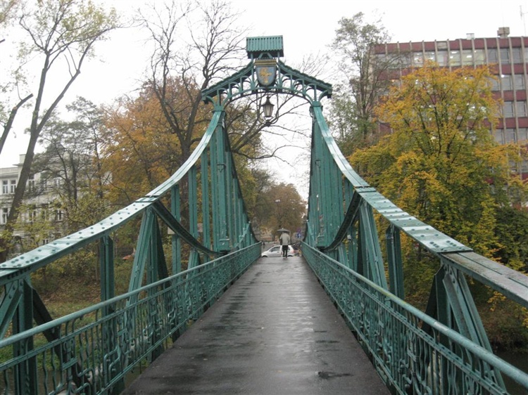 Most spacerowy dla ruchu pieszego na Młynówce istniał już w 1894 r. Secesyjny, dwuprzęsłowy most zbudowano w 1903 r. Nazwę nadano mu od pobieranej tutaj opłaty w wysokości jednego grosza za przejścia. Obecnie powszechnie nazywany jest "Zielonym mostkiem".